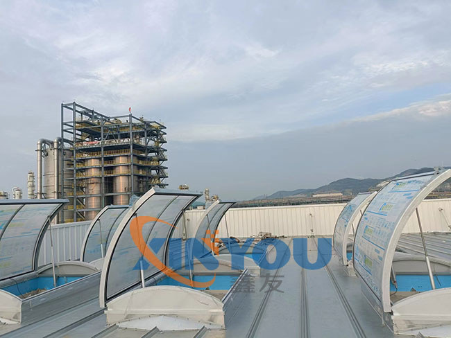 圓拱形的設(shè)計,外觀優(yōu)美、通風(fēng)排煙兼顧自然采光,開啟角度一般為30度到45度***開啟角度為90°。
