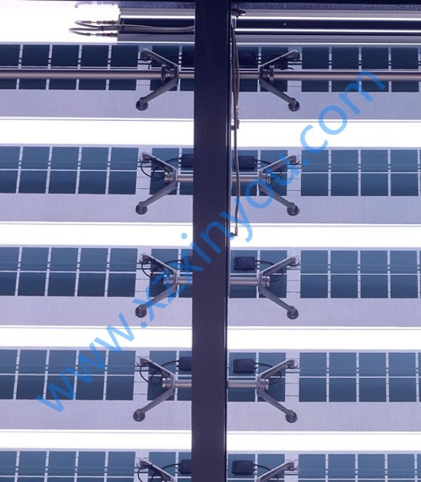 光伏百葉,能夠有效的將太陽能轉(zhuǎn)化為電能、動(dòng)能,同時(shí)百葉滿足日常的采光、遮陽這樣功能。光伏百葉環(huán)境控制單元可以預(yù)置對風(fēng)、雨、光、溫、煙等感應(yīng)參數(shù),使之通過外置感應(yīng)器,對超限值作出及時(shí)回應(yīng)進(jìn)而控制百葉動(dòng)作,完全實(shí)現(xiàn)了綠色環(huán)保節(jié)能的建筑理念。